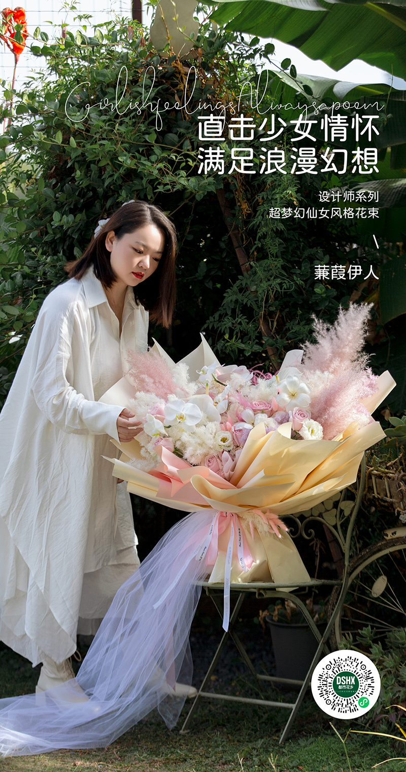 用粉白色系的花材,代入優(yōu)美的文辭,